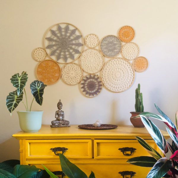Aro em bambu. Trama das mandalas em algodão.