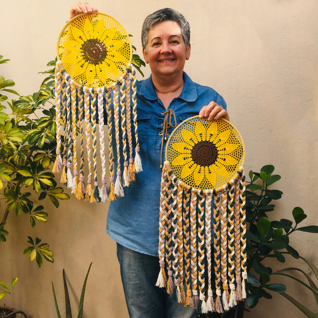 Base da peça feita em aro de bambu. Trama em linha de algodão e tassels em barbante de algodão ecológico.