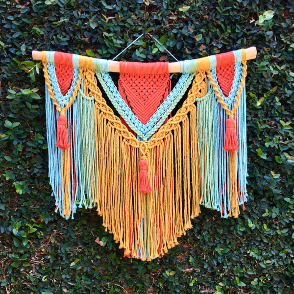 Base da peça feita em barbante de algodão. Bastão de madeira natural.