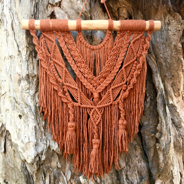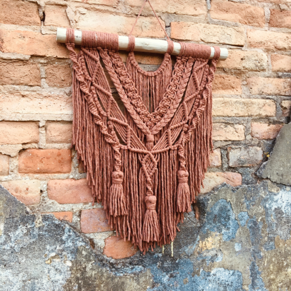 Base da peça feita em barbante de algodão ecológico. Bastão de madeira natural.